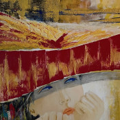 Es handelt sich um Acrylbilder. Durch das Aufspachteln von Strukturpaste, Sand oder Körnungen entstehen strukturierende Elemente, die mitunter durch Einarbeitung von verschiedenen Stoffelementen verstärkt werden.